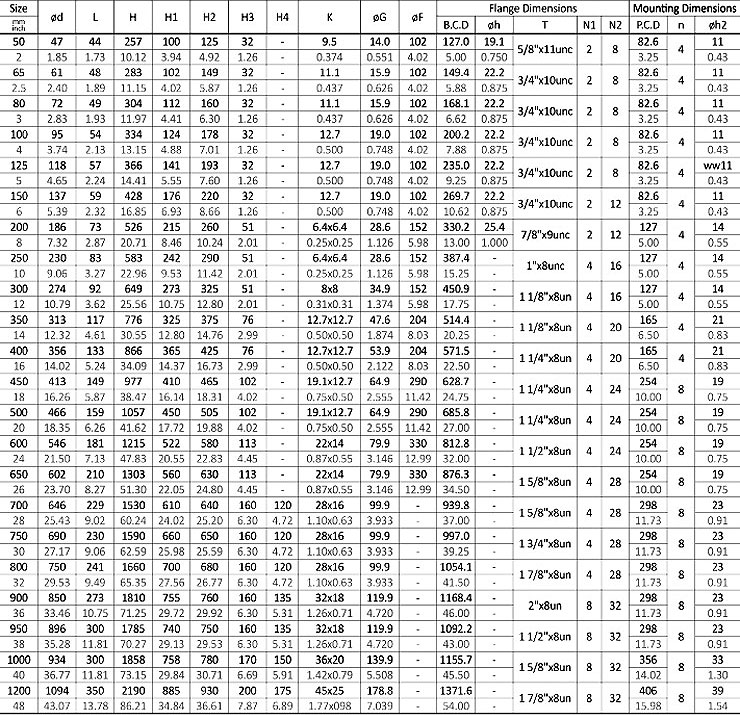All torque values in the table are for the wet media. If the media is dry, the torque should be 20%~30% greater than the figure in the table.