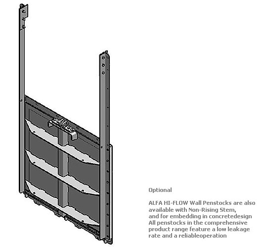 ALFA HI-FLOW wall penstocks are square or rectangular with resilient sealing on all four sides of the slide.