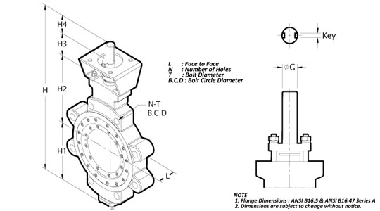 | size | H | H1 | H2 | H3 | H4 | L | G | Key | Flange Dimensions | |||